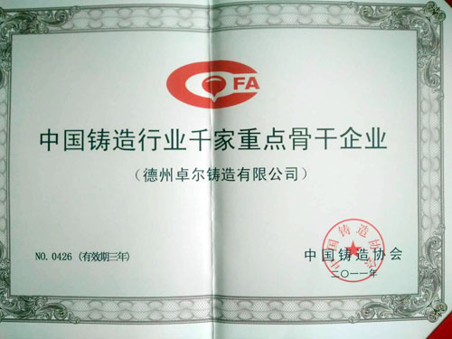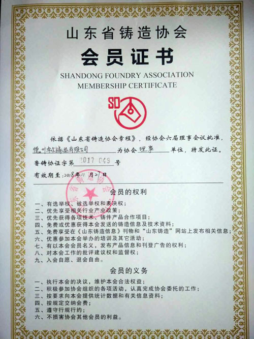 中國鑄造協(xié)會(huì)會(huì)員證書