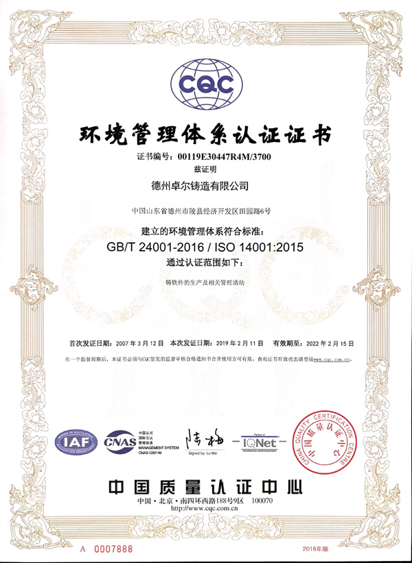 環(huán)境管理體系認(rèn)證證書